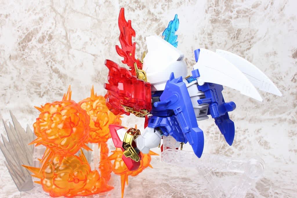 創傑伝やCSフレームとはまた違った可動で、SDガンダムの可動向上のアプローチの可能性はまだまだある事を思い知らされます。