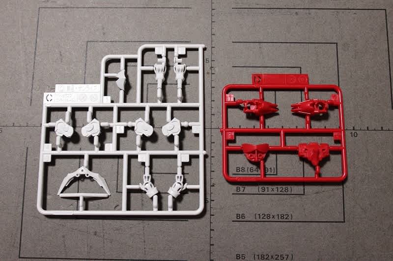 ただ、下段真ん中の肩用パーツは孫尚香では使わないので余剰パーツとなります。