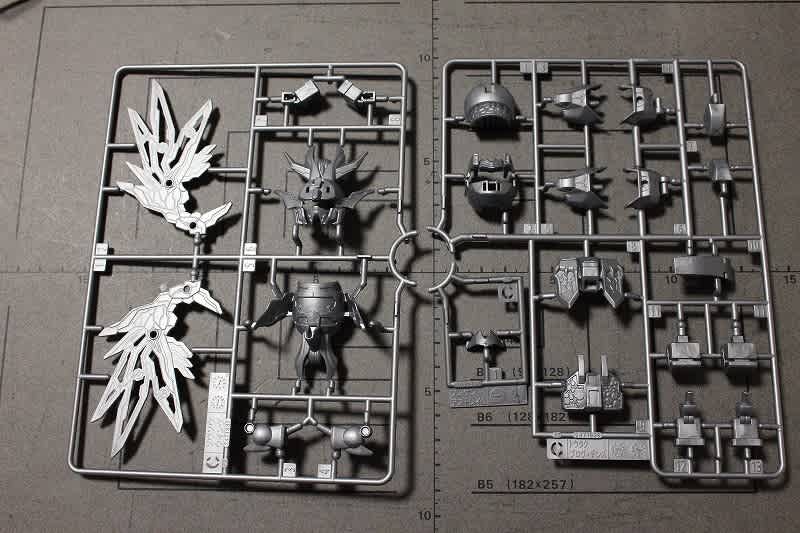 以前、コメントで、創傑伝キットは3体分の共通色のランナーをまとめて成型して、ばらしてキットにしている…と教えて頂いたので、