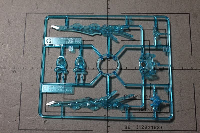 水色のクリアパーツ。Eランナーがレッドクリアなので、2色のクリアパーツが使われています。