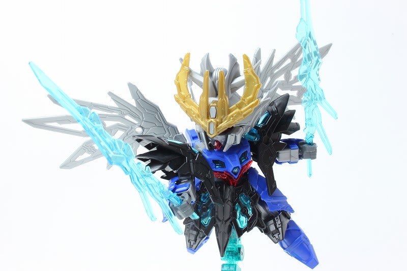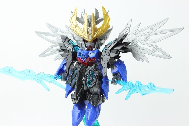 武器、分割できるんですね。合体してるとなんだか迫力が足りないなと思ってたんですが二振りになるとかっこいい。しかも背中に懸架できるとは。正直なところ今回発売で一番微妙なデザインだと思ったのに、レビューみたら考え変わりました。入手手段さえなんとかなればなぁ…