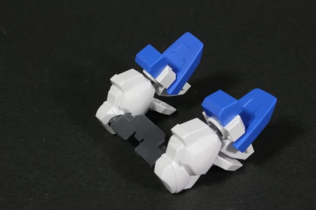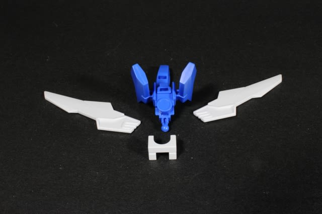 肩アーマーのウイング部分は、肩アーマーと一体化しているので、可動しません。下向いたままで固定。