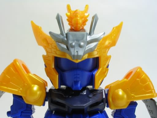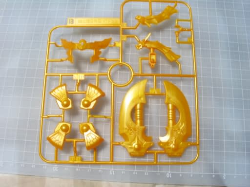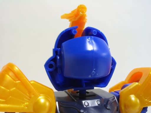 設定通りのカラーリングにするには、各部の金色、あごの赤、腰の後部などに塗装が必要。