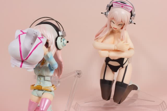 なのでセクシー度では固定フィギュアの方が上かな? でも、軟質パーツなので、もんだり、寄せたりできます。