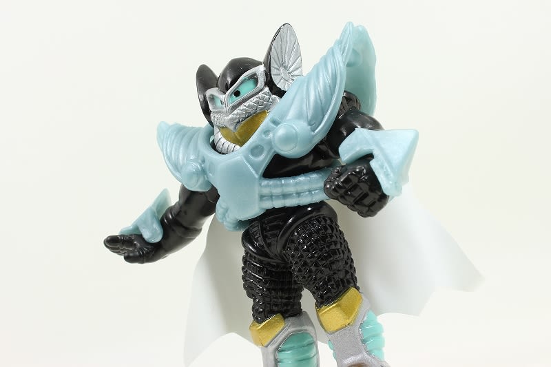 ずっとカプセル内で畳まれていたためか、マントの曲がりがどうやっても修正できない…。