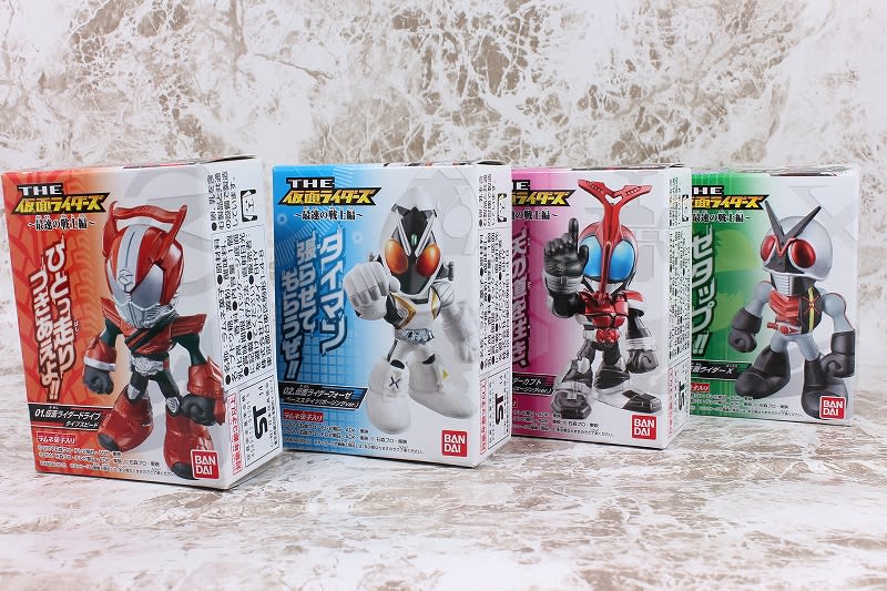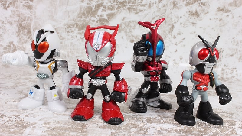 今弾は、ドライブが初登場。その他ポージングタイプのフィギュアや久々の昭和ライダーもラインナップされて、全4種類。