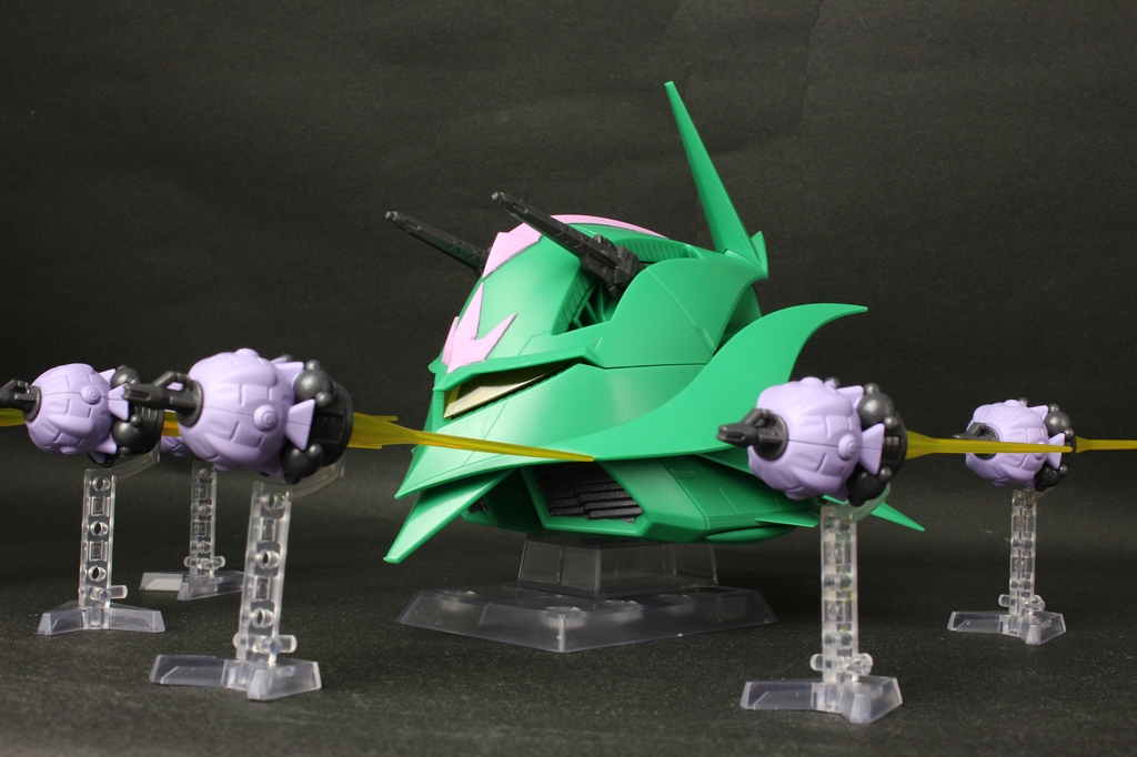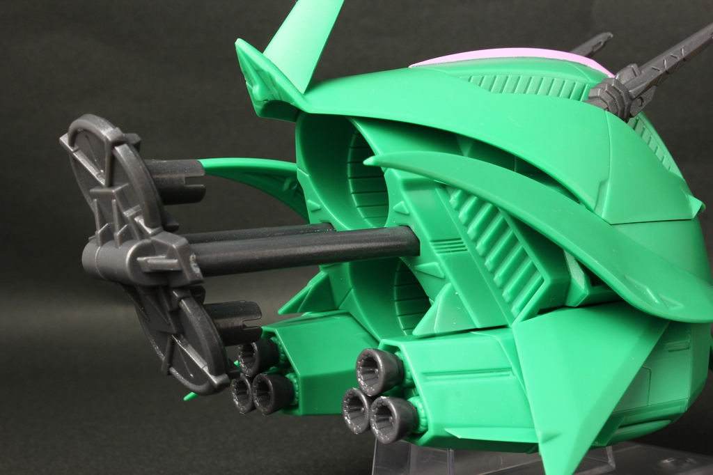 メガ粒子砲は可動式で角度を変えられます。原作に比べ、かなりアレンジの施された形状になりました。こちらはランナーから切り取って組み立てるパーツ。