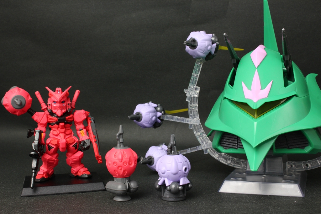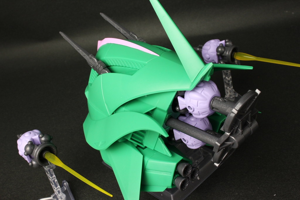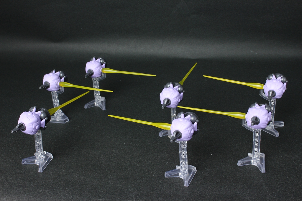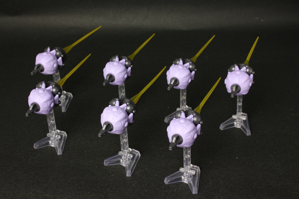 赤いガンダムのビットと。色のほか、後部の形状も結構違いますね。赤いガンダムの方のタンクっぽい部分がよりリアルな形状。