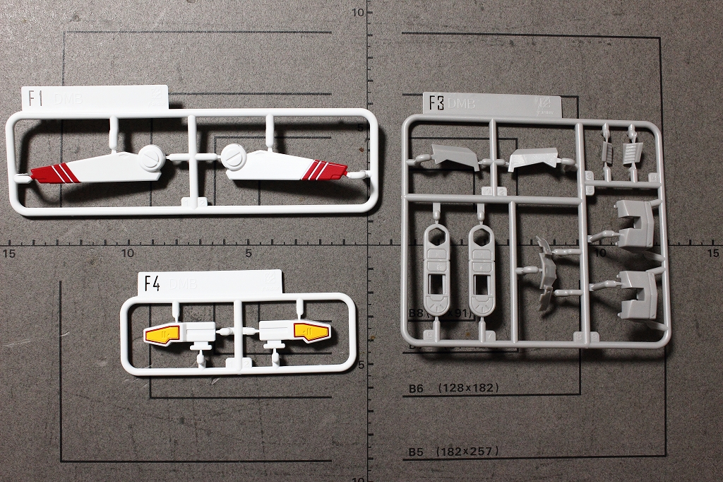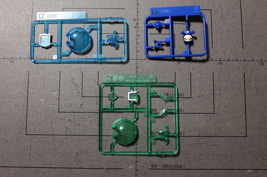 カラフルな機体の色分け再現のため、青い基部パーツに細かなパーツを取り付けていくという方法が多くとられており、