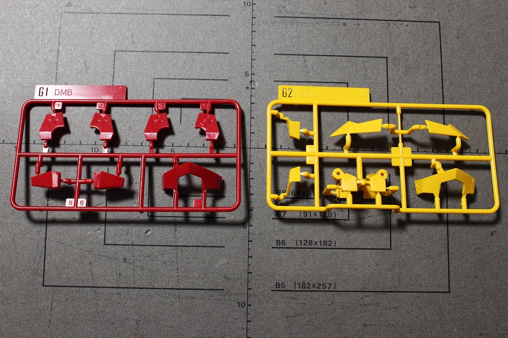 セイントブラスターの同じ脚担当のイエロークラッシャーとは共通しているランナーも多く、その影響で今回は使用しないパーツもいくつかあります。