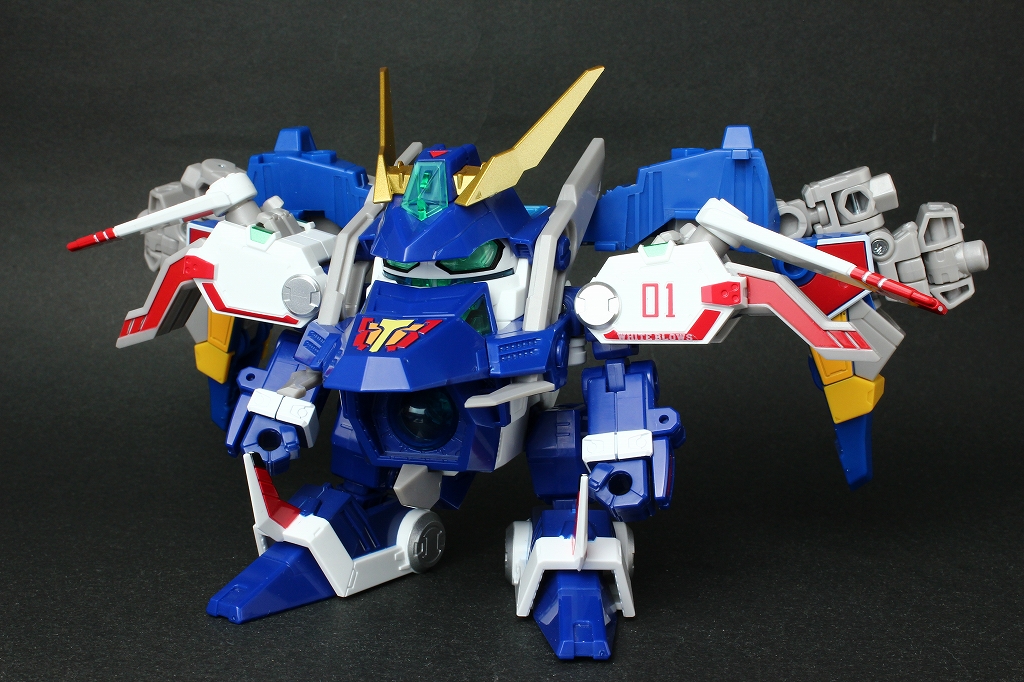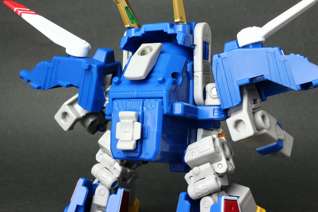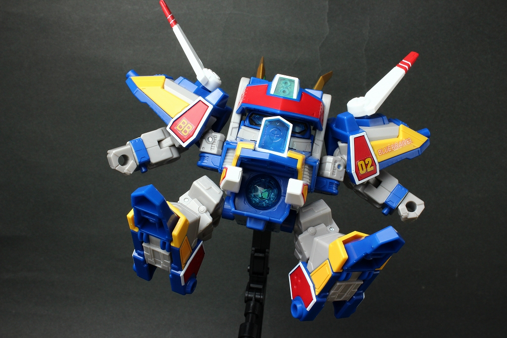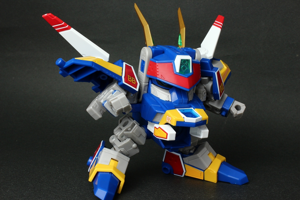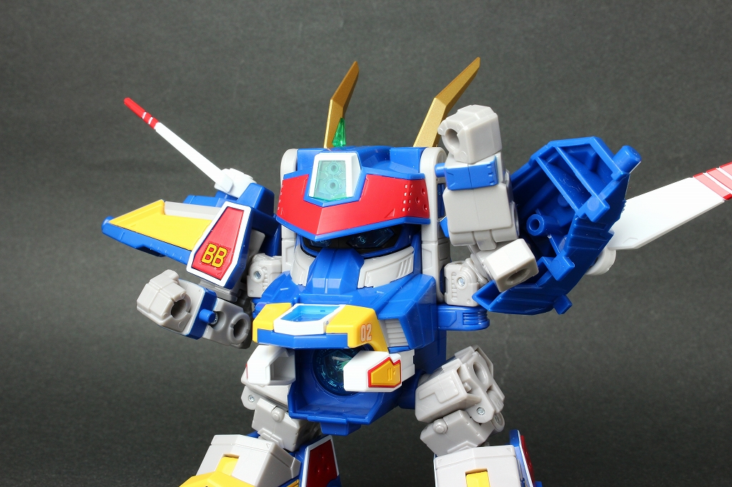 第一弾のホワイトブロスや今月発売予定のイエロークラッシャーと合体し、セイントブラスターの一角となる機体。