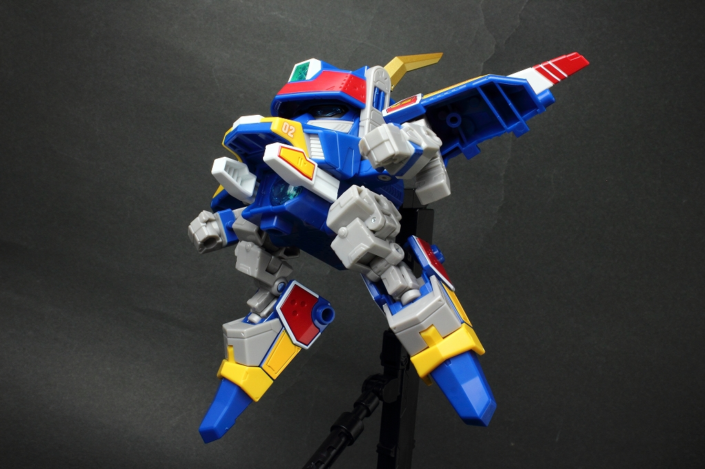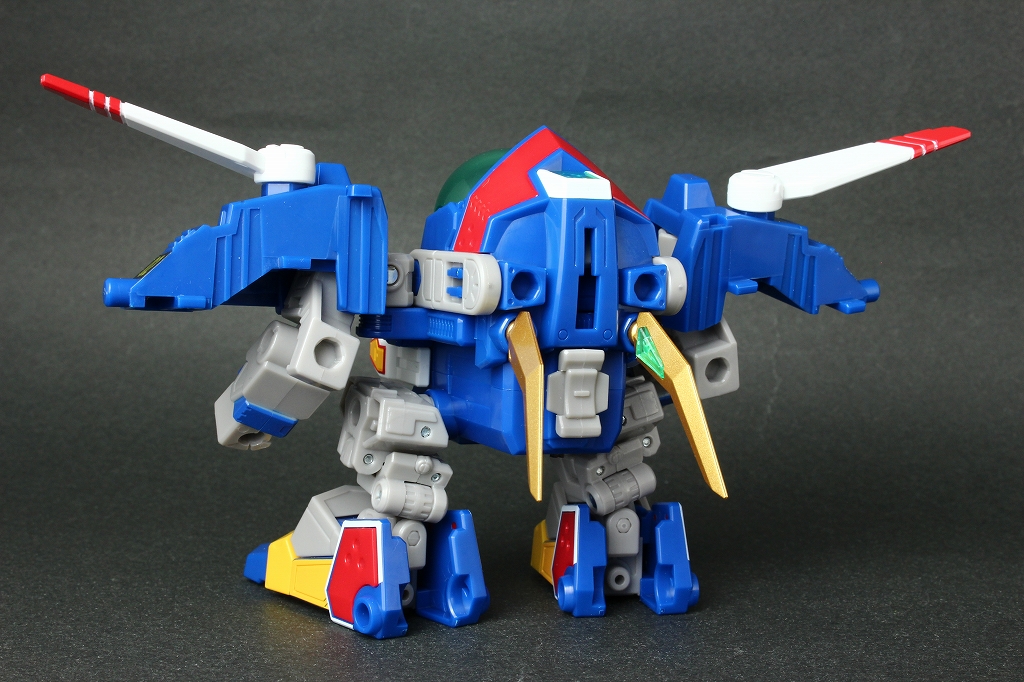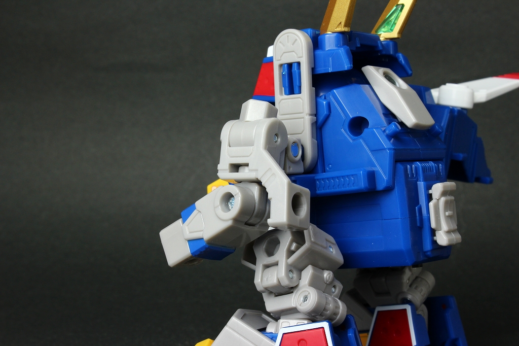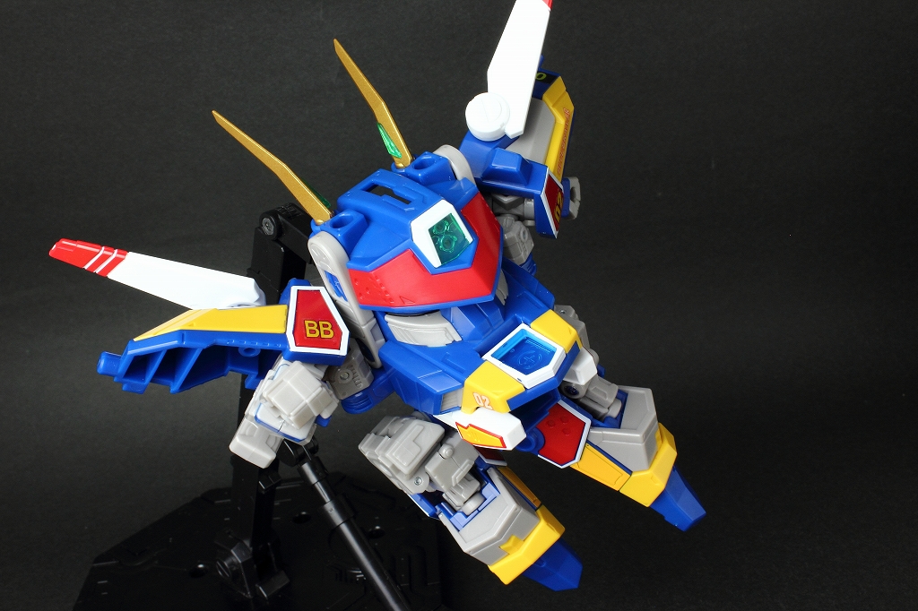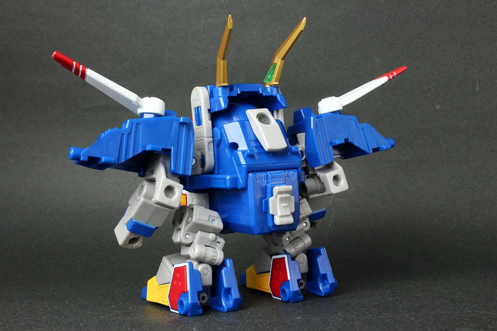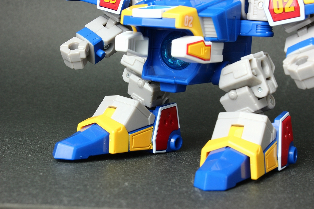 第一弾のホワイトブロスや今月発売予定のイエロークラッシャーと合体し、セイントブラスターの一角となる機体。