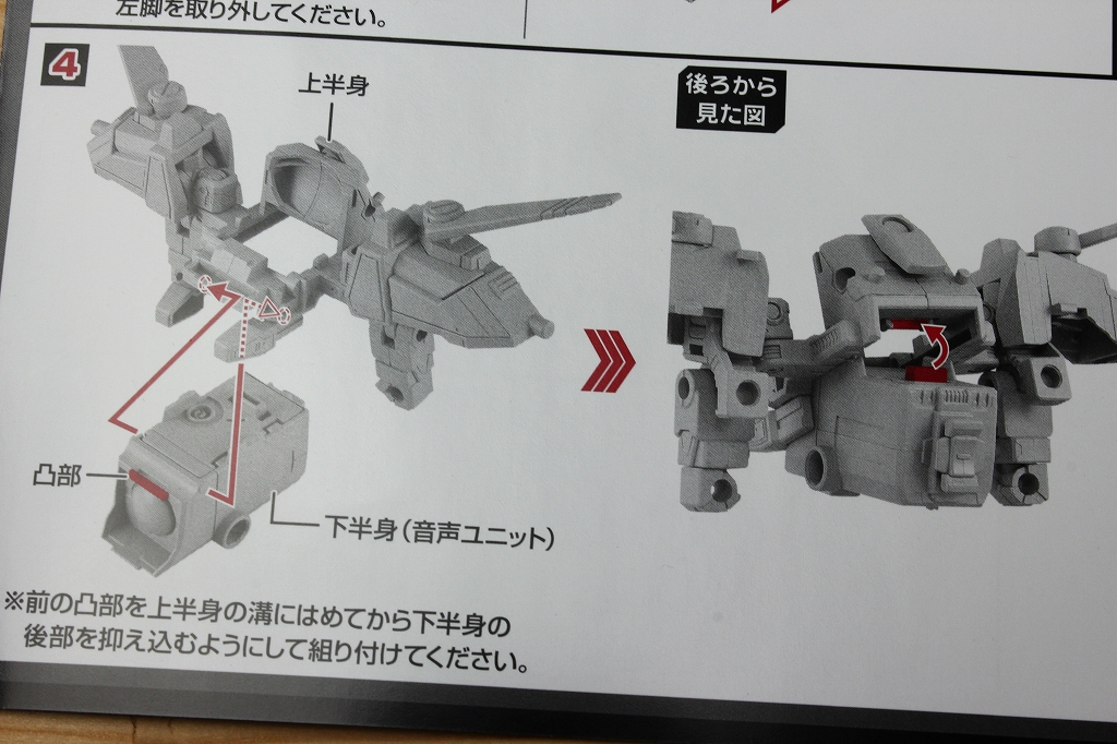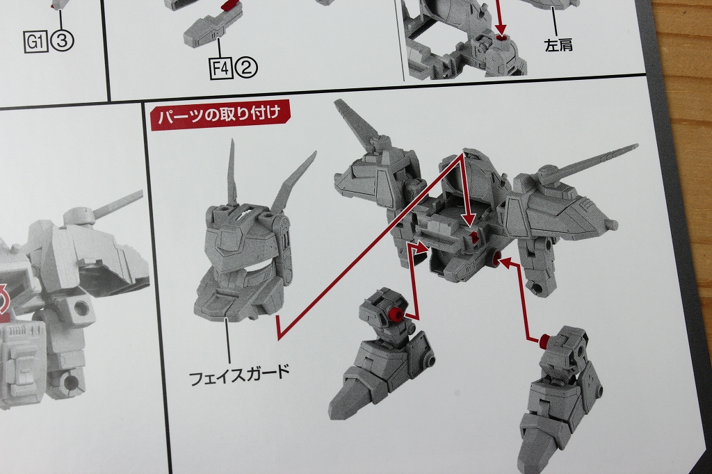 ここをしっかり取り付けていないと、フェイスガードの変形時に支障があるので注意。