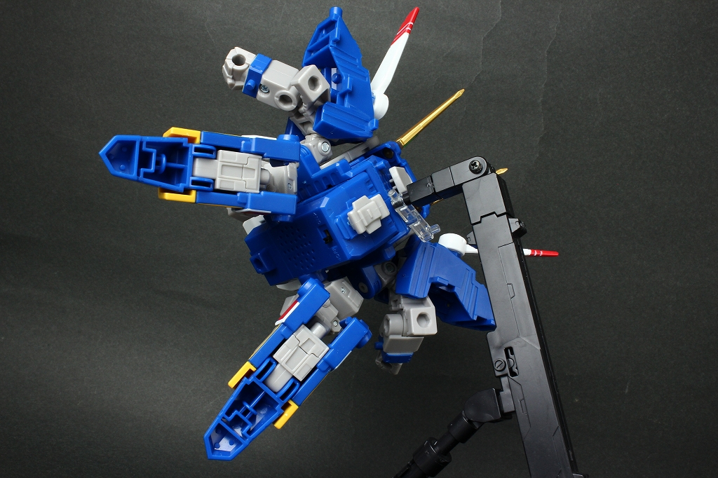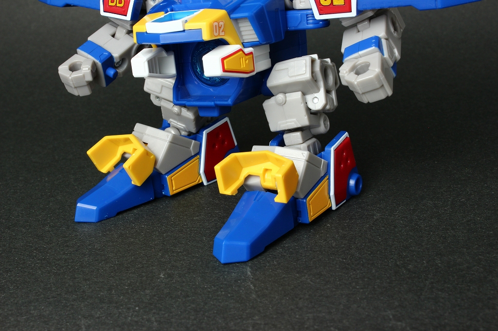 セイントブラスター時の接地能力を上げるためか、脚に折りたたみ式の関節が内蔵されています。