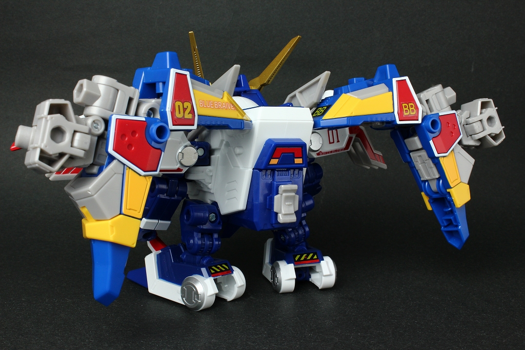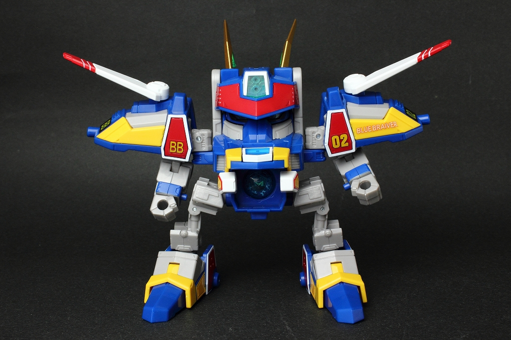 ブロスが龍の頭をモチーフにしたようなヒロイックなスタイルなのに対し、ブルーブレイバーはメカっぽさが強いスタイルに感じます。