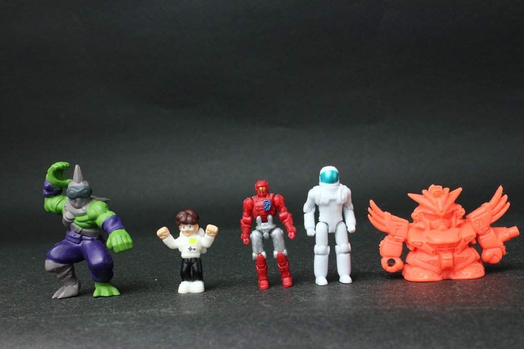 中央のダイアクロン隊員の右はマイクロウォーズのフィギュア。右端はガシャポン戦士です。